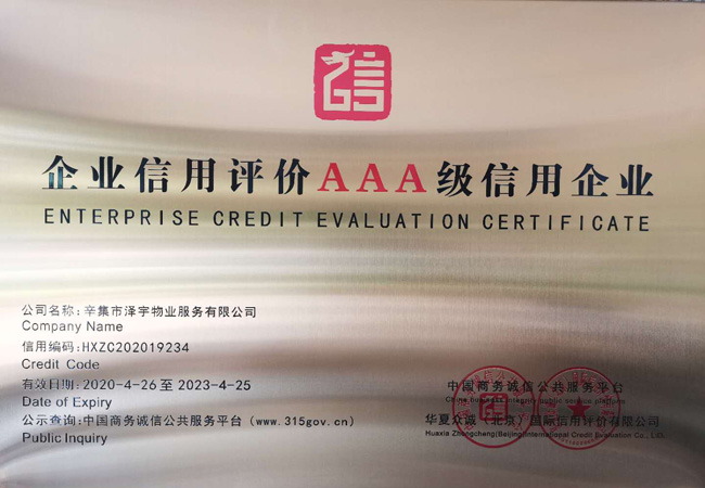 企業(yè)信用評價(jià)AAA級信用企業(yè) |
